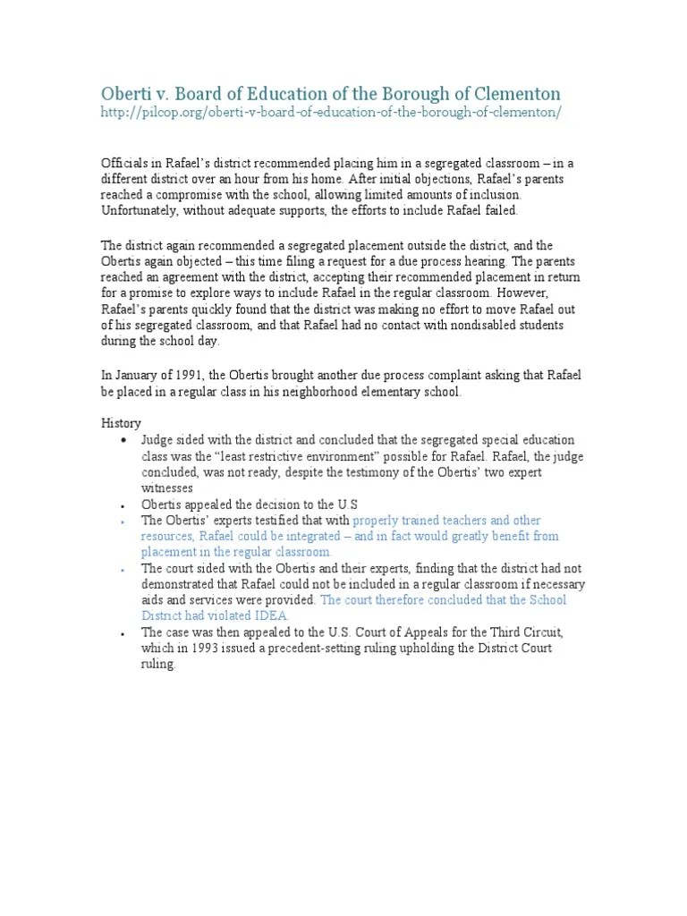 Oberti sang berney. Oberti v. board of education of the borough of clementon. History of special education and inclusive education timeline. Education oberti clementon borough law sample special sutori rafael 1992 district school board. Special education law timeline
